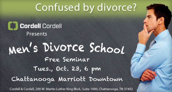 Cordell & Cordell is hosting a free Men’s Divorce School seminar for guys on Tuesday, October 23, in the Chattanooga, Tenn., area.
